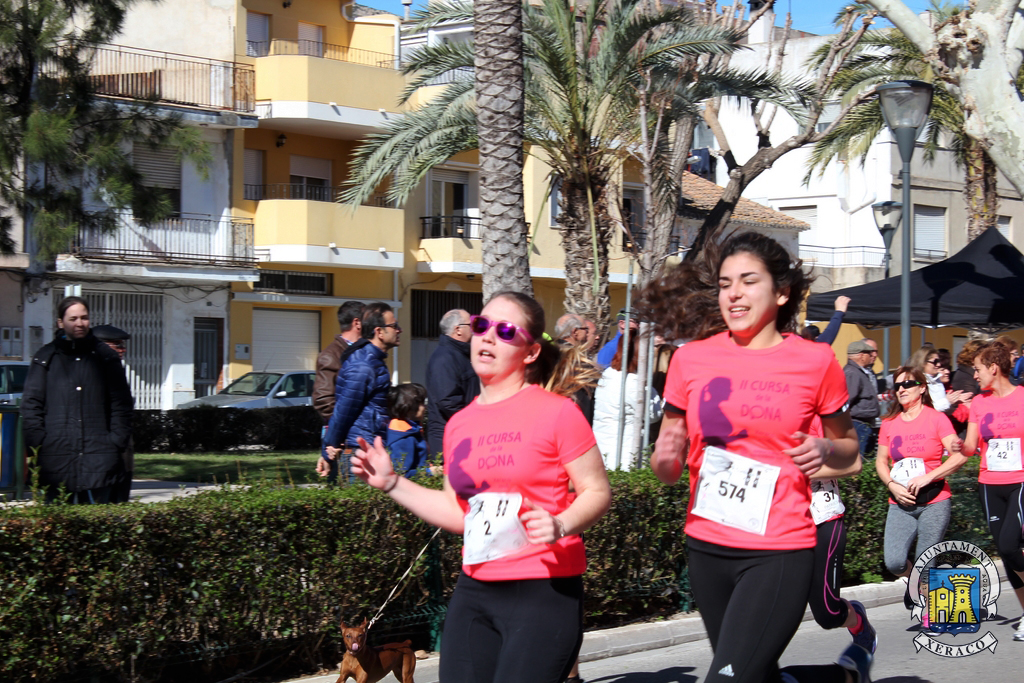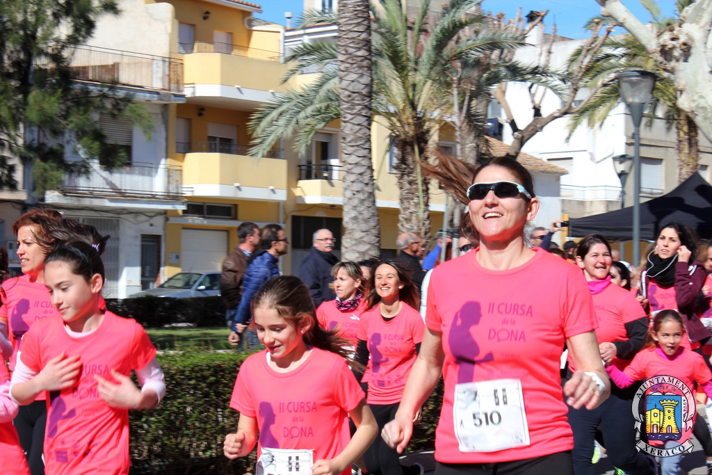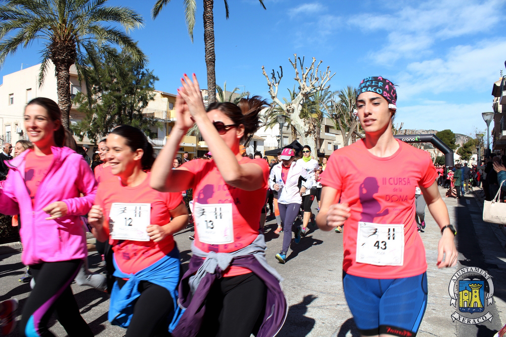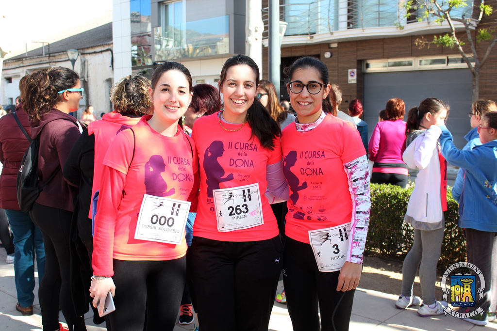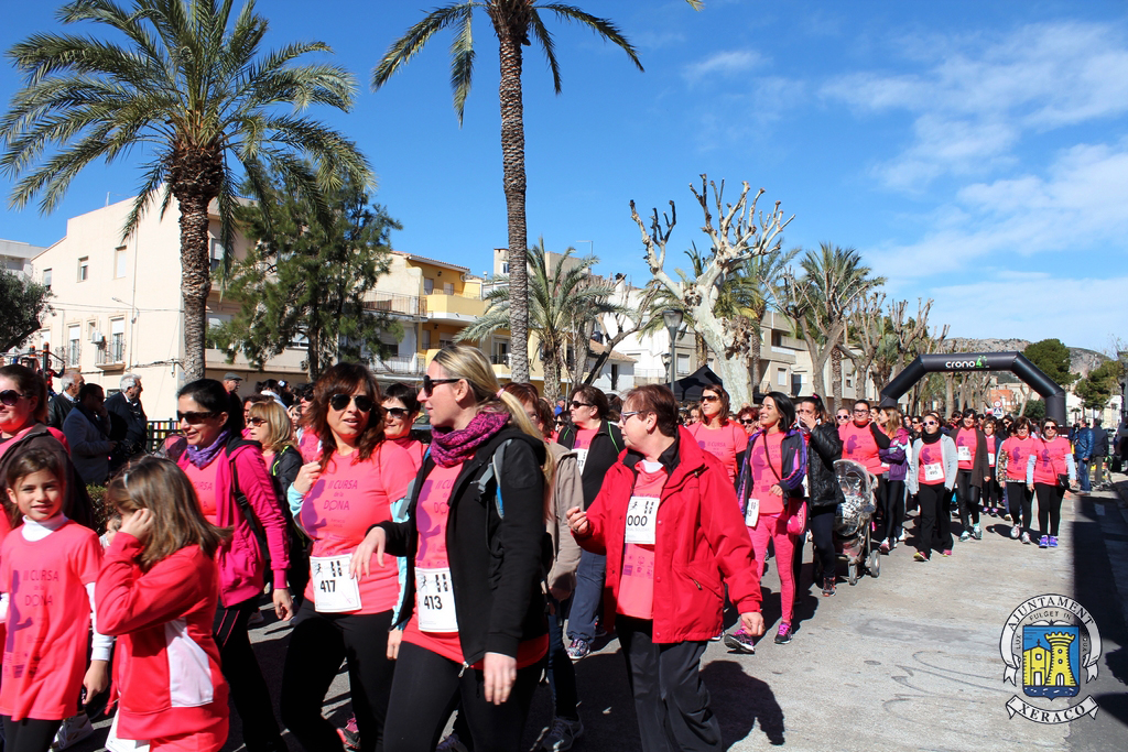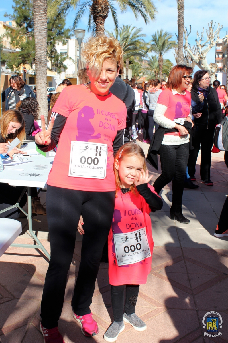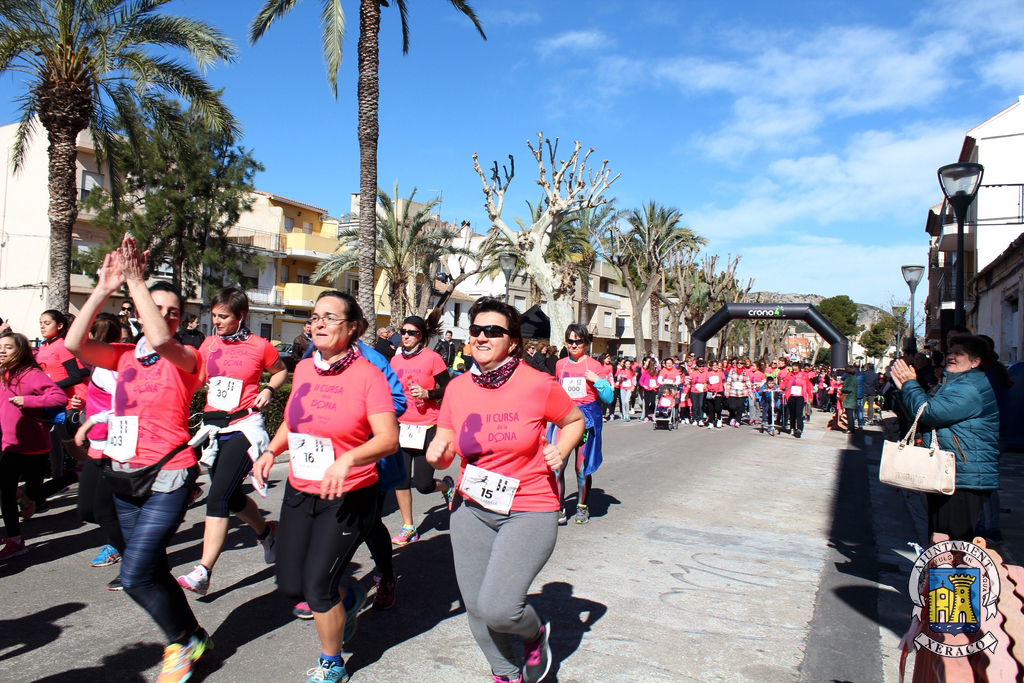 Els carrers de la localitat s’han tenyit del color rosa de les samarretes commemoratives, al pas de les quasi 700 participants que han pres l’eixida, aquest matí, en les modalitats de cursa i marxa de la II Cursa de la Dona a Xeraco, quasi el doble de la primera edició d’aquest esdeveniment esportiu, solidari i reivindicatiu.